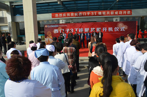 儀式較后,各位領(lǐng)導(dǎo)共同為西門子3T核磁共振開機(jī)儀式剪彩。隨后一行人來到放射科,觀看西門子3T核磁共振的開機(jī)。