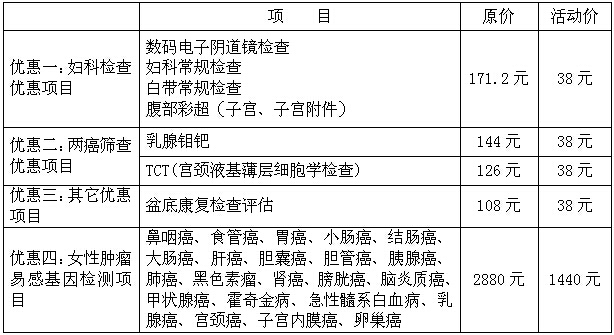 本次活動(dòng)時(shí)間為4月10日至5月25日。為回饋廣大女性朋友的支持,承辦方莆田盛興醫(yī)院在體檢項(xiàng)目上也做了升級(jí),由去年的婦科常規(guī)檢查,到今年增加了盆底康覆項(xiàng)目與女性腫瘤易感基因檢測(cè)項(xiàng)目。