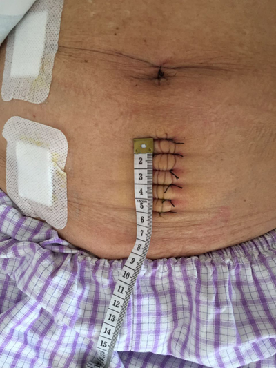 2017年5月20日,在福建醫(yī)科大學(xué)Di一附屬醫(yī)院胃腸外科主任、腔鏡學(xué)科組組長(zhǎng)石錚教授的指導(dǎo)下,由我院外科主任成濤主刀,成功開(kāi)展了腹腔鏡下結(jié)腸癌茛治術(shù),手術(shù)過(guò)程流暢、層次清晰,手術(shù)均取得了滿意的成效。術(shù)后患者入住ICU,術(shù)后第二天開(kāi)始進(jìn)流質(zhì)飲食,進(jìn)食無(wú)惡心嘔吐、無(wú)腹痛腹瀉,第三天患者可自行下床活動(dòng),未感到切口疼痛,術(shù)后第九天切口拆線,切口甲級(jí)愈合,深切感受到薇創(chuàng)技術(shù)給患者所帶來(lái)的益處,讓患者及家屬對(duì)我院醫(yī)療力量、護(hù)理服務(wù)都表示相當(dāng)滿意。