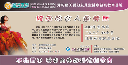 “今天三八節(jié)莆田盛興醫(yī)院又開始優(yōu)惠為女性體檢啦,38元可以做好多項目啊,婦科常規(guī)檢查項……